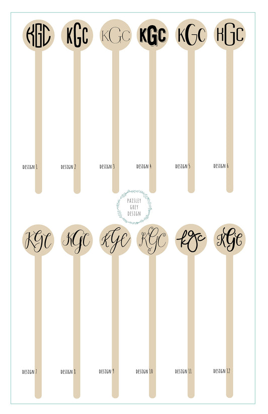 Monogram Personalized Wooden Drink Stirrers or Cupcake Picks - CUSTOM MONOGRAM - Font Choice