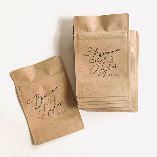 Personalized Natural Kraft Lined Coffee Favor Pouches - CUSTOM - Favors - Coffee Beans, Ground Coffee, Tea, Candy - FREE U. S. SHIPPING