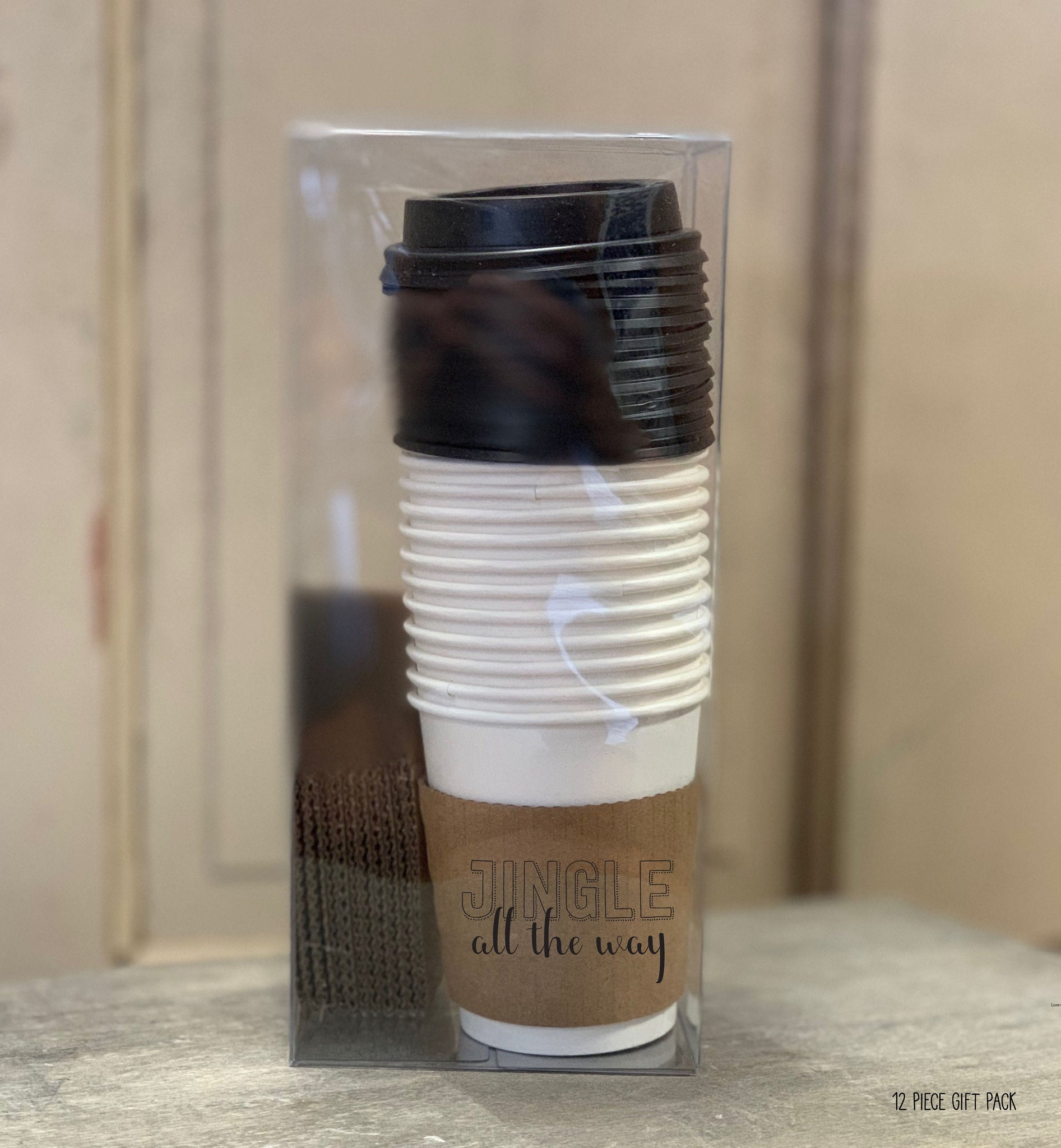 This listing is for your choice of pack size - printed sleeves, cups and lids: brown coffee sleeves, with your choice of phrase/graphic shown. Great for friends, teacher gifts, neighbors, anyone who loves those cozy warm beverages! Please check our other listings for different styles. We are adding new designs, but if you have one in mind, let us know. *** We discount U. S. shipping for multiple gift sets; first item is $6.50 and each additional is $1.50. If you purchase 6 or more, shipping is FREE ***