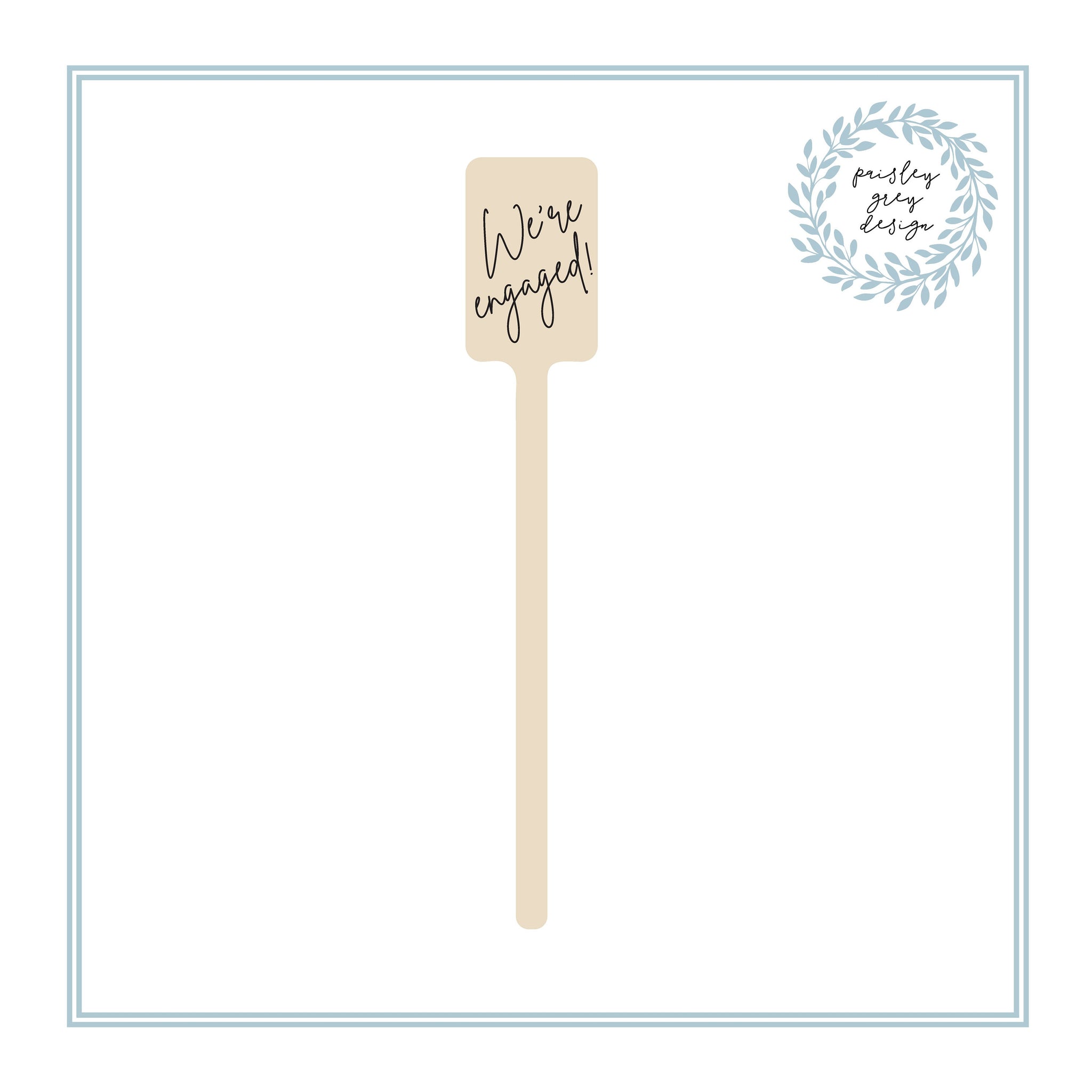 Standard print wedding-themed wooden picks; please use drop downs to select quantity. (LISTING PHOTOS ALSO SHOW CUSTOM STYLES, WHICH CAN BE FOUND IN ANOTHER LISTING AND INCUR AN ADDITIONAL FEE FOR CUSTOMIZATION).