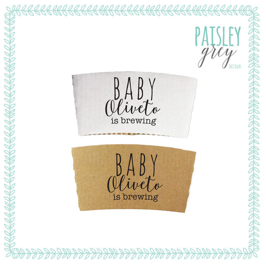 Personalized Natural Brown Kraft Coffee Sleeves - Custom Baby is Brewing or Custom Design