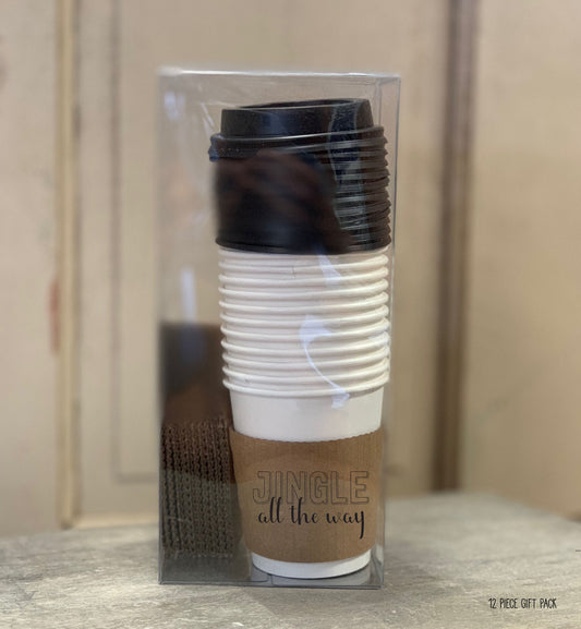 Holiday Themed Coffee Boxed Gift Sets!! Brown Kraft Sleeves, White Cups and Black Lids - Christmas Hostess or Corporate Gift