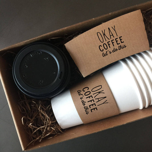 Personalized Natural Brown or White Kraft Coffee Sleeves or Sleeves Cups & Lids - Optional Stirrers - Your Design Choice and Customization