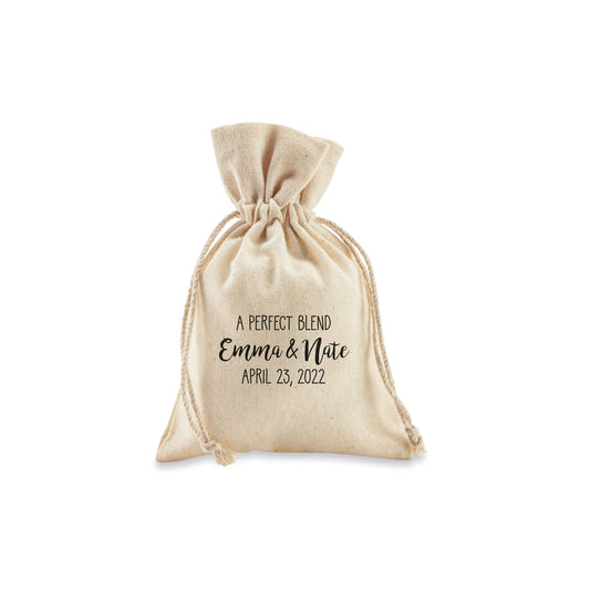 FREE U. S. SHIPPING Custom Coffee Tea Premium Favor Cotton Drawstring Bags - Wedding or Shower - Coffee Beans, Ground Coffee, Tea, Candy