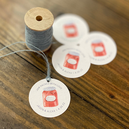 Textured White TAGS - 49mm Round Two Inch Tags - Jam Jar or Mason Jar Watercolor Design - Printed and Cut - CUSTOM - Party Wedding Favor