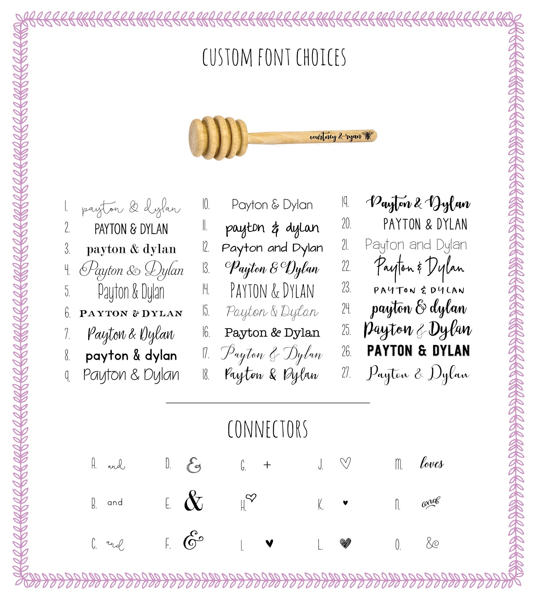 - for standard designs (1 and 2), we will use a 4" honey dipper unless you indicate otherwise in the checkout notes (please do not enter customization if you are choose DESIGN1 or DESIGN2; these items are pre-printed and you will receive the design as shown in the listing photo)