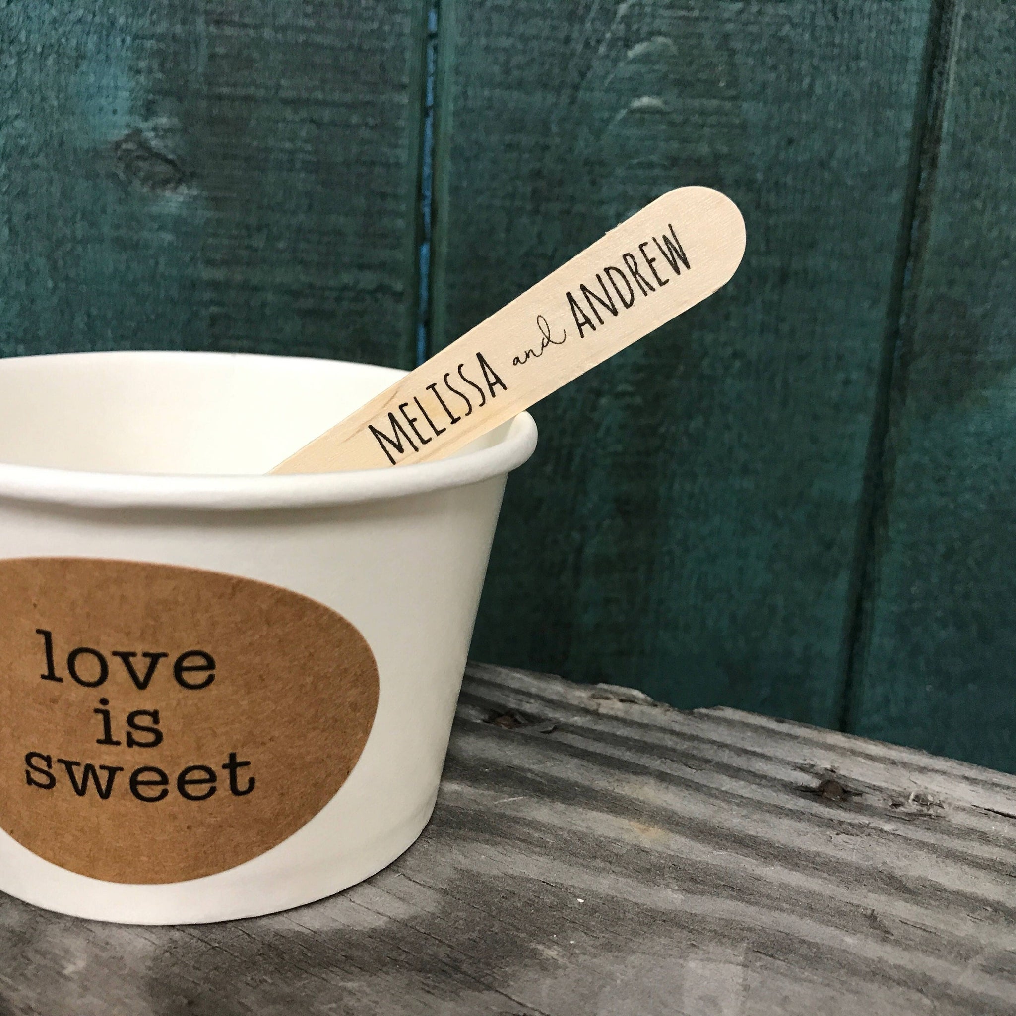 All orders ship with 5.5" spoons unless you indicate otherwise in the checkout notes. We also offer 4.5" spoons and 6" spoons; if either are needed, please add this information in the checkout notes. Stickers are provided separately and cups are left in sealed bags to minimize handling.