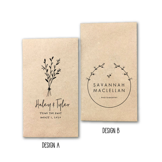 Custom Design Printed 100% Recycled Brown Kraft Personalized Seed Packets - Wedding Favors - Ready to Fill and Seal - FREE U. S. SHIPPING
