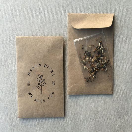 Custom Design 100% Recycled Brown Kraft Personalized Memorial Seed Packets - Celebration of Life - Memorial Favors - FREE U. S. SHIPPING