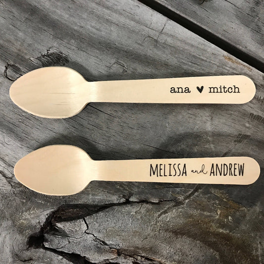 FREE U.S. Shipping QTY 25 Ice Cream Cups and Printed Message Spoons - Choose Your Cup Color and Size - Plus Wooden Spoons