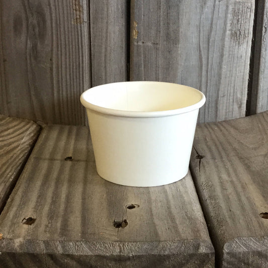 Custom - (QTY 50) 8 Ounce White Ice Cream Cup, With or Without Lids, Wooden Spoon and Recycled Brown Kraft Label Set - Free US Shipping