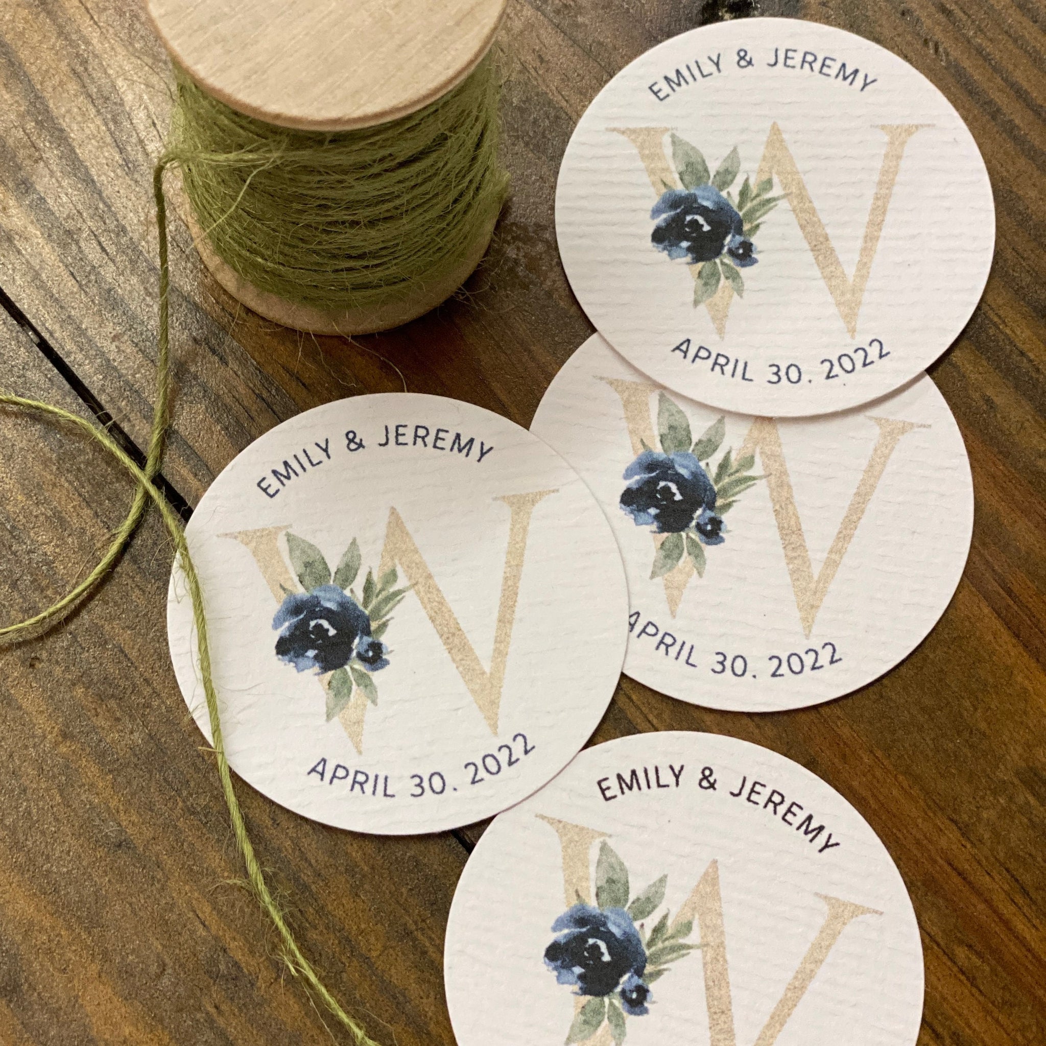 These tags arrive to you printed and punched out. Customized in the same fonts as shown. Tags are available with holes, but we will provide them unpunched unless there is a note at checkout (so that they may be used for jar labels, etc.)