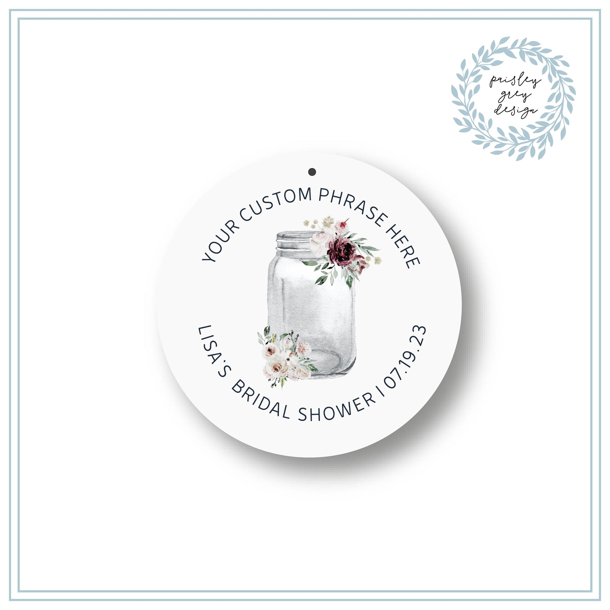 All tags will be provided in the same design. Choose jam jar or empty mason jar with flowers.